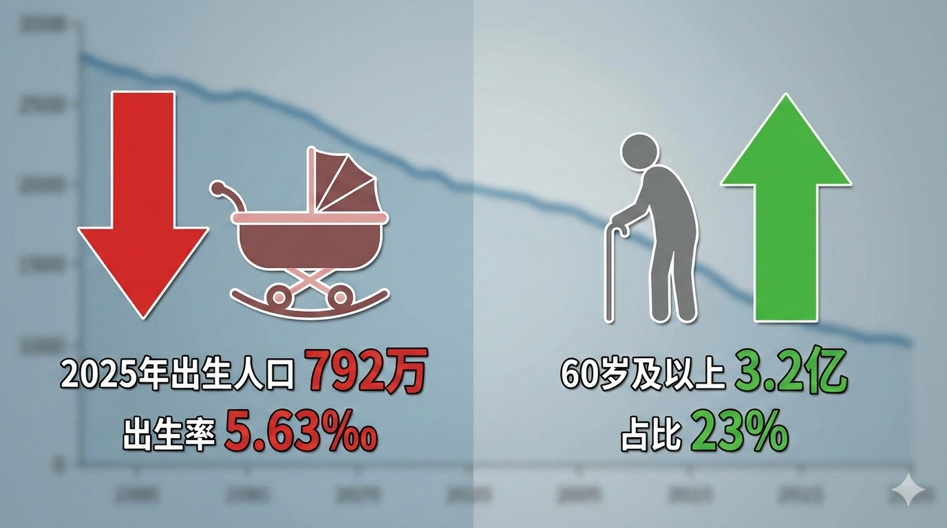 首先看出生数据:2025年全年出生人口792万,出生率跌到了5.63‰。它不仅跌破了800万大关,更是创下了1950年以来的历史新低。全国总人口14.05亿,比前一年减少了339万。人口自然增长率是负2.41‰。中国人口已经连续4年出现负增长。
