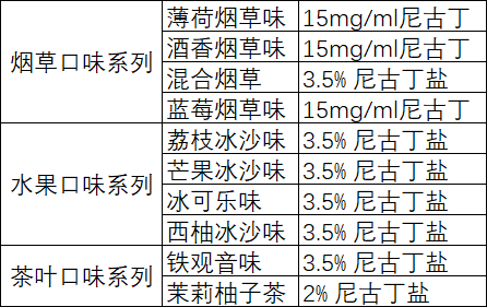 Smile电子烟口味分为3大类,目前有现货的共10中口味,如下表所示